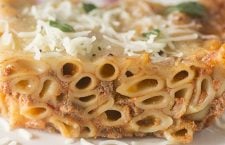 Beefy oven Baked ziti with a delicious variety of cheeses and flavored with red peppers makes this one of my favorite comforting pasta dishes of all times. It's simple to make and no boiling the noodles needed.