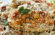 Braised chicken thighs with a creamy mushroom and bacon sauce. Made with tender asparagus and seasoned with fresh herbs.