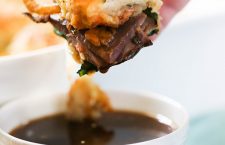 Easy French Dip Sliders made with Sara Lee® Angus Medium Roast Beef, provolone cheese, diced vegetables and served on hot slider rolls. Paired with an easy au jus gravy everyone will love.